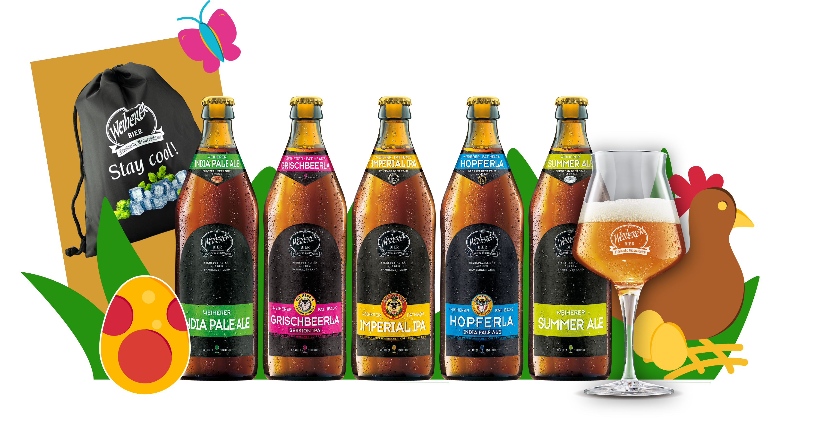 Mit dem Weiherer Osterpaket wird das Osterfest zum besonderen Genussmoment. In diesem Paket vereinen sich tolle Weiherer Ales, die bei renommierten internationalen Bierwettbewerben mehrfach ausgezeichnet wurden und für ihre hohe Braukunst sowie ihren charaktervollen Geschmack stehen. Jedes Ale bringt seine eigene Aromatik mit und sorgt für abwechslungsreichen Biergenuss über die Osterfeiertage.